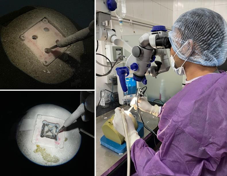 Physical training models for ex vivo study on animal tissue like sheep’s head and scapula for drilling practice.